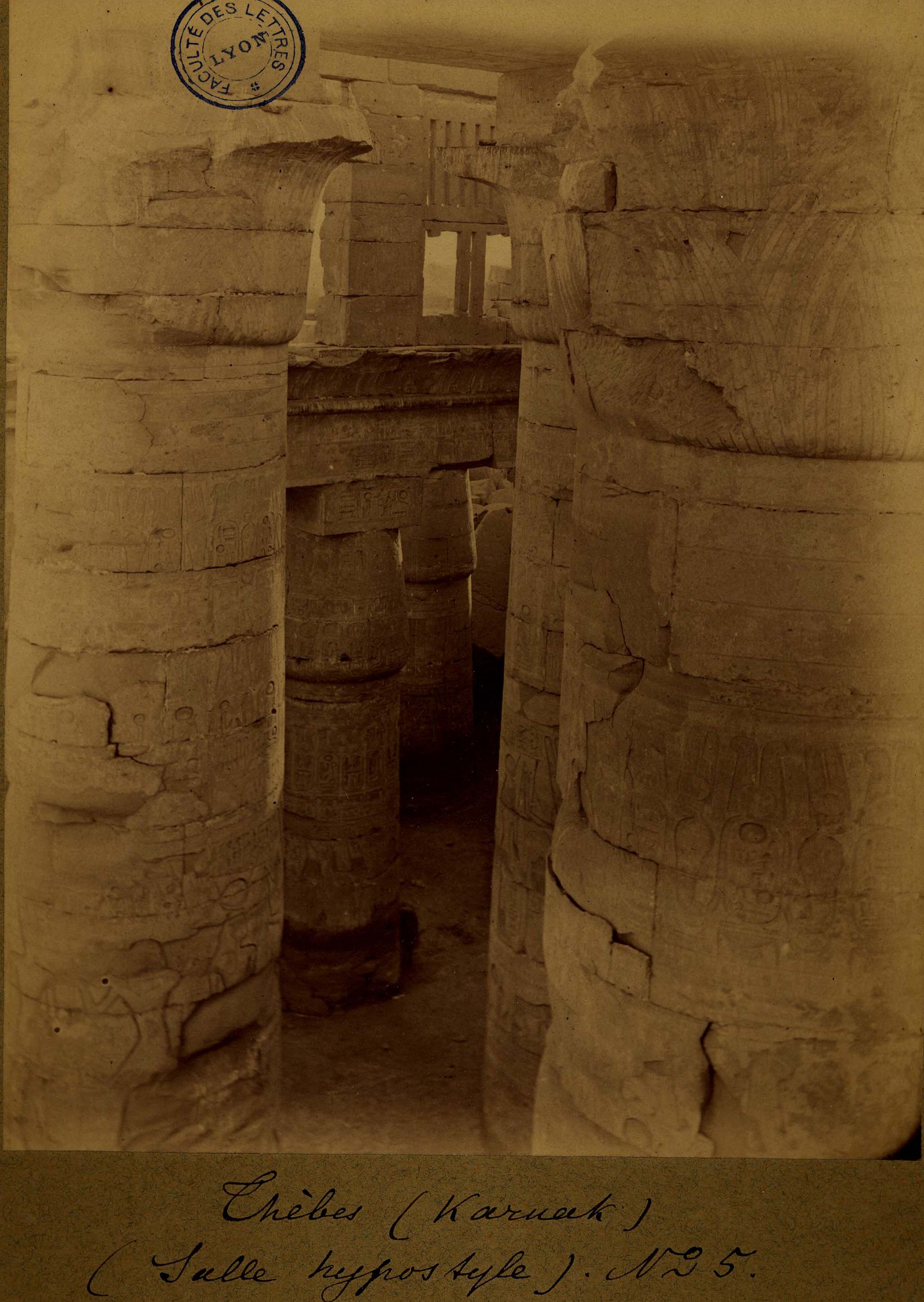 Karnak – Hypostyle n°5 Publié le 22/05/2018 à 2057 × 2899 dans Saqqara 1898 Karnak – Hypostyle n°5 Tirages n°75-76*. Thèbes (Karnak) (Salle hypostyle) N°5.