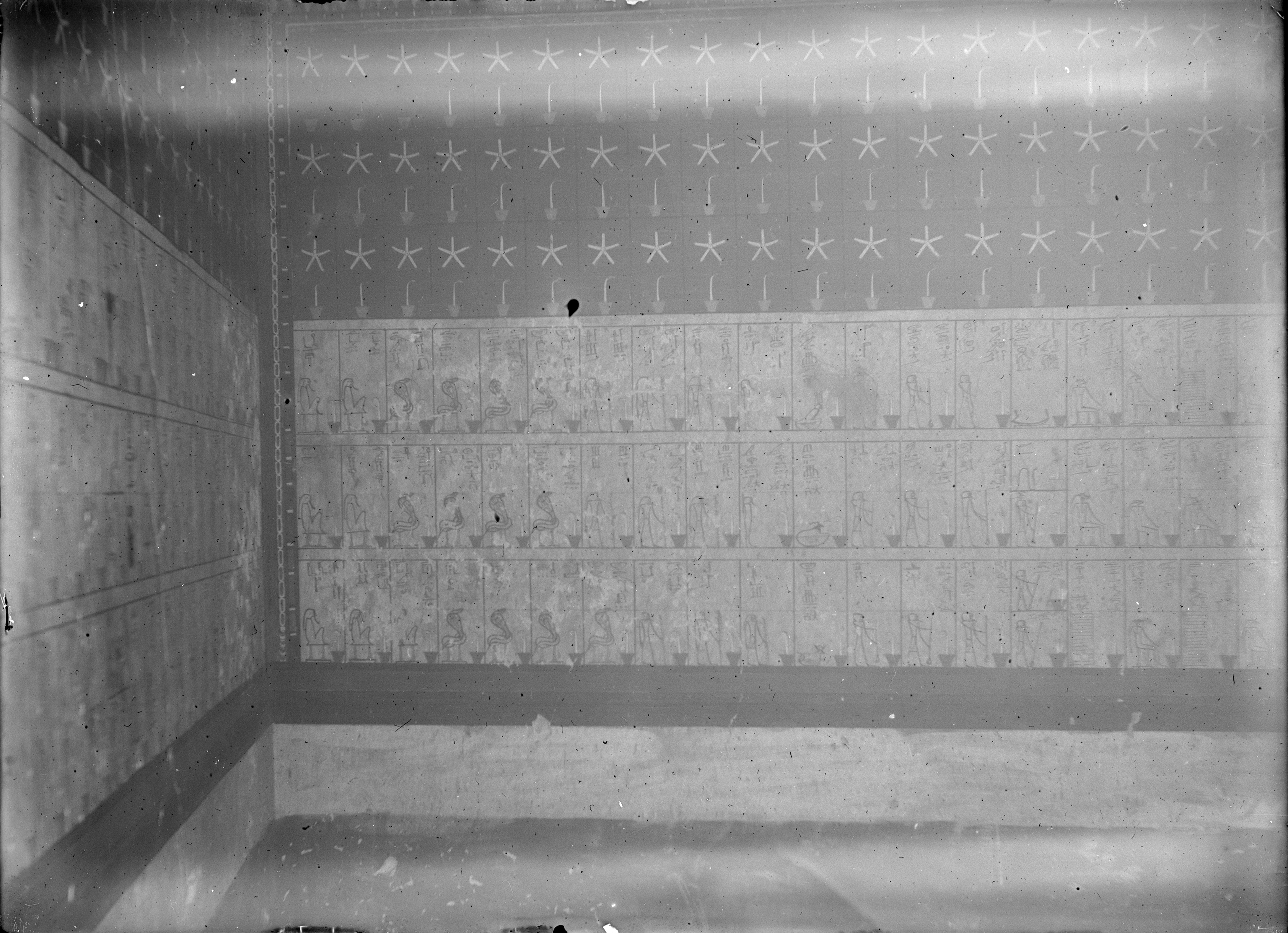 1898. Biban-el-molouk. Tombe de Thoutmès III. 1ère salle Publié le 01/06/2018 à 3367 × 2439 dans Galerie d’images 1898 – Biban-el-molouk. Tombe de Thoutmès III. 1ère salle – VdR39 Paroi de la chambre aux 740 divinités